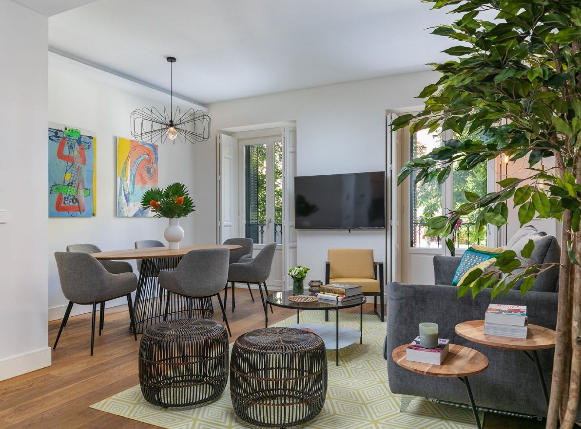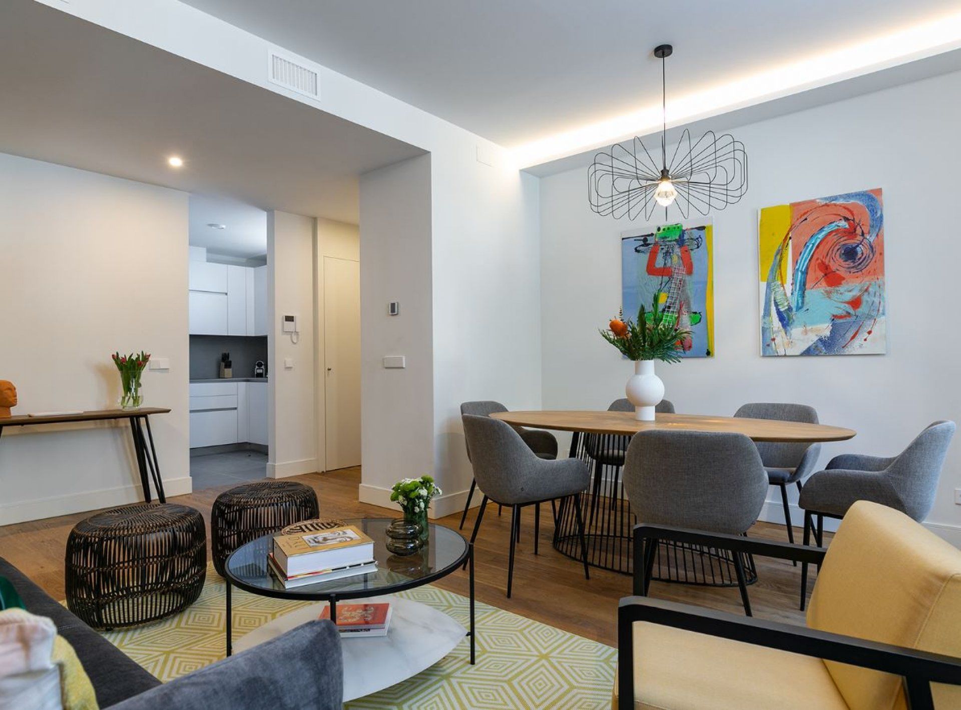 Equipamiento e interiorismo de vivienda de lujo, destinada a alquiler turístico o estadías largas, situada en el barrio de Salamanca en la Calle Alcal