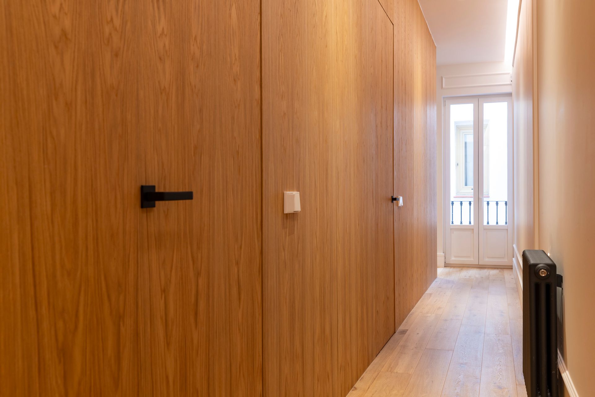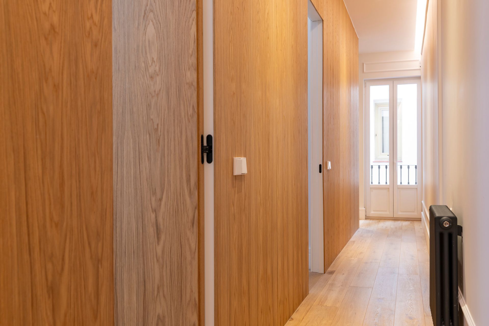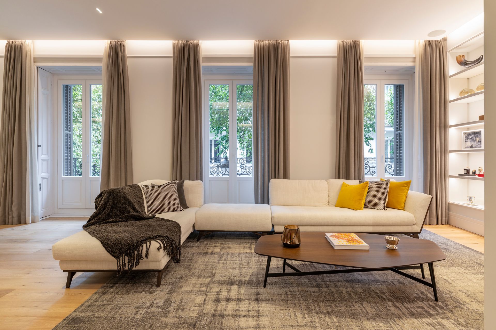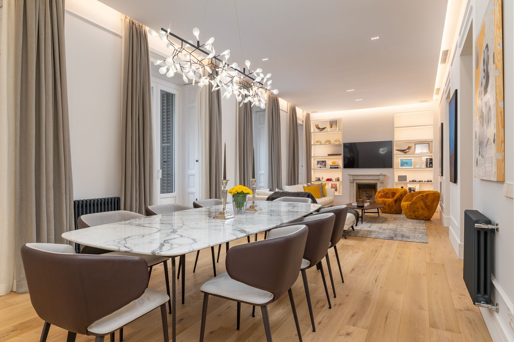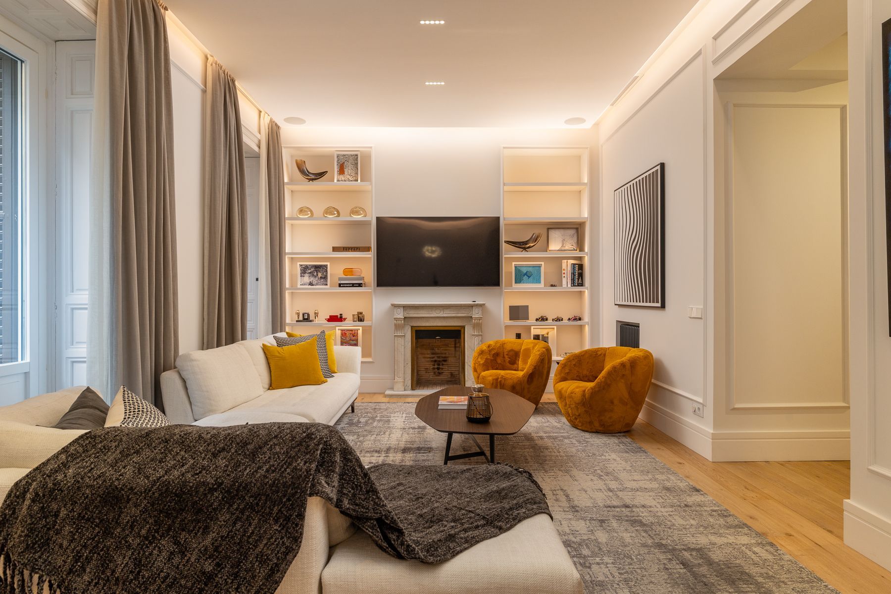Un proyecto reciente en la Calle Barquillo, donde realizamos una reforma integral de esta vivienda exterior, pensada para resaltar su amplitud y carácter.