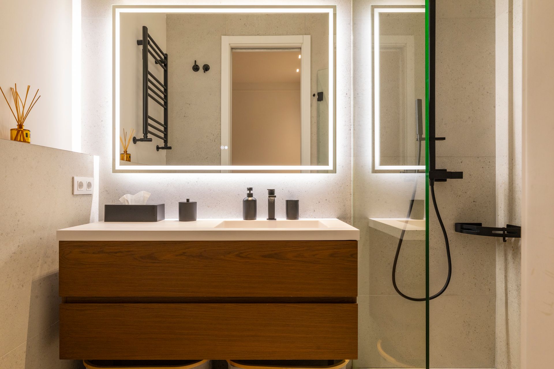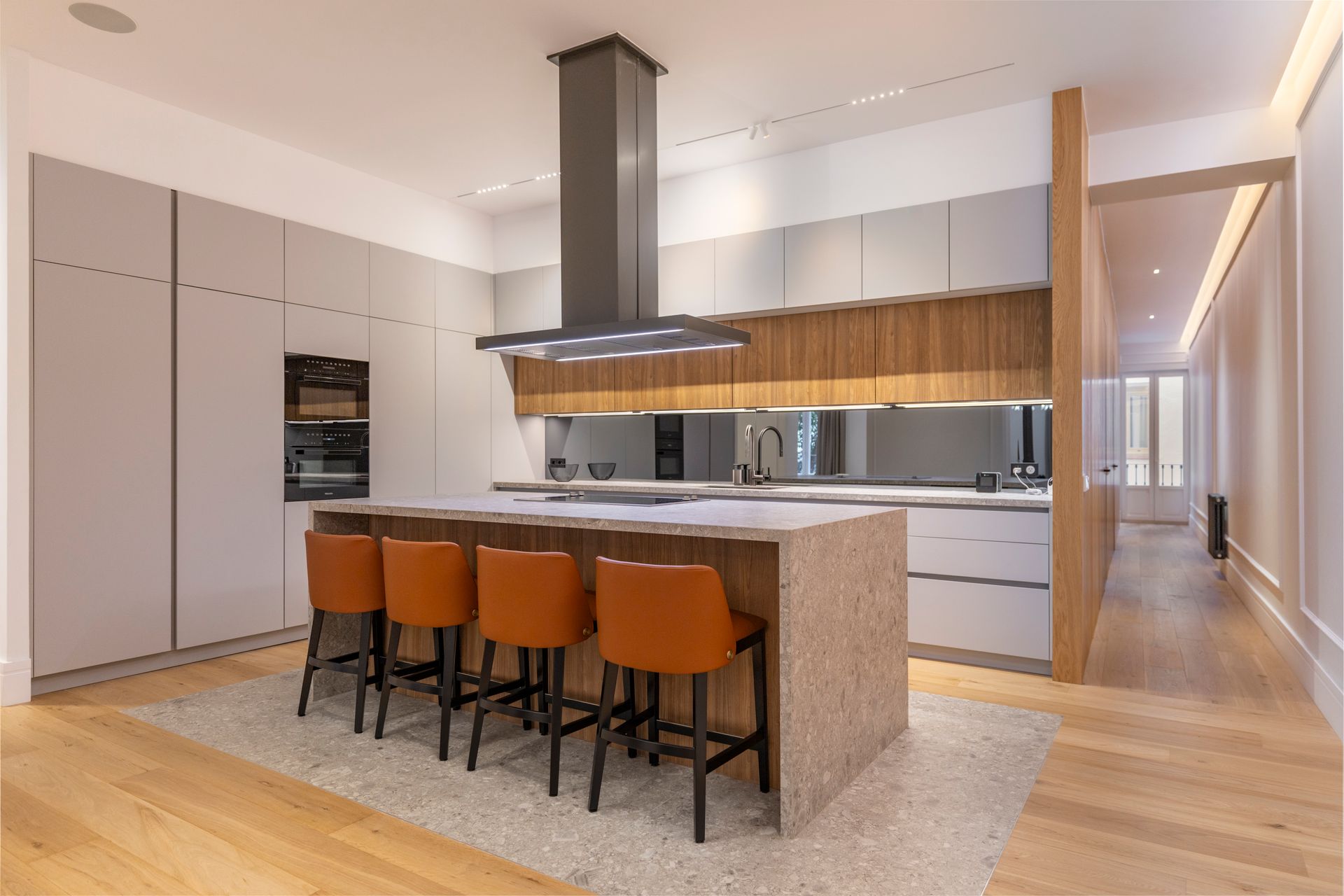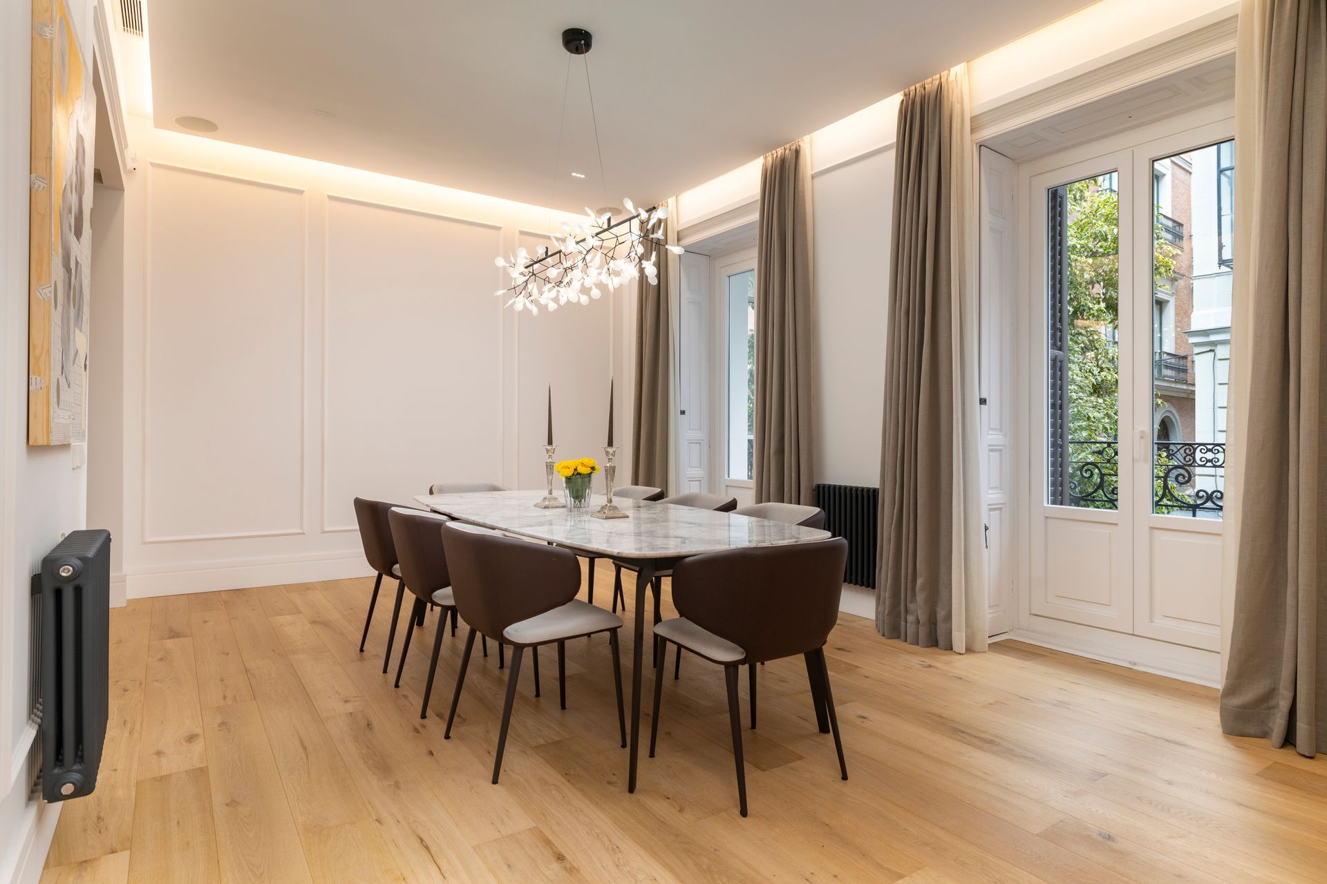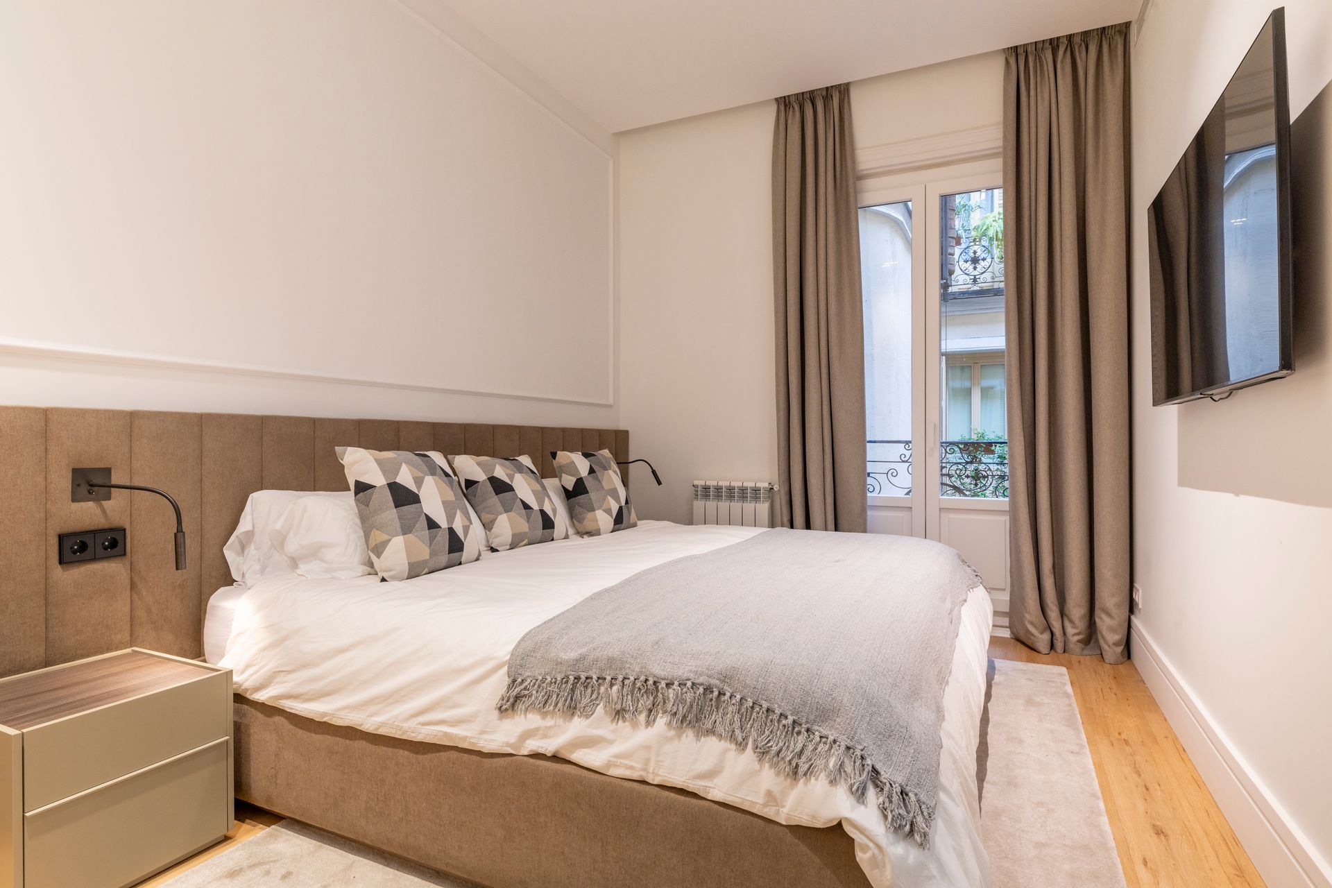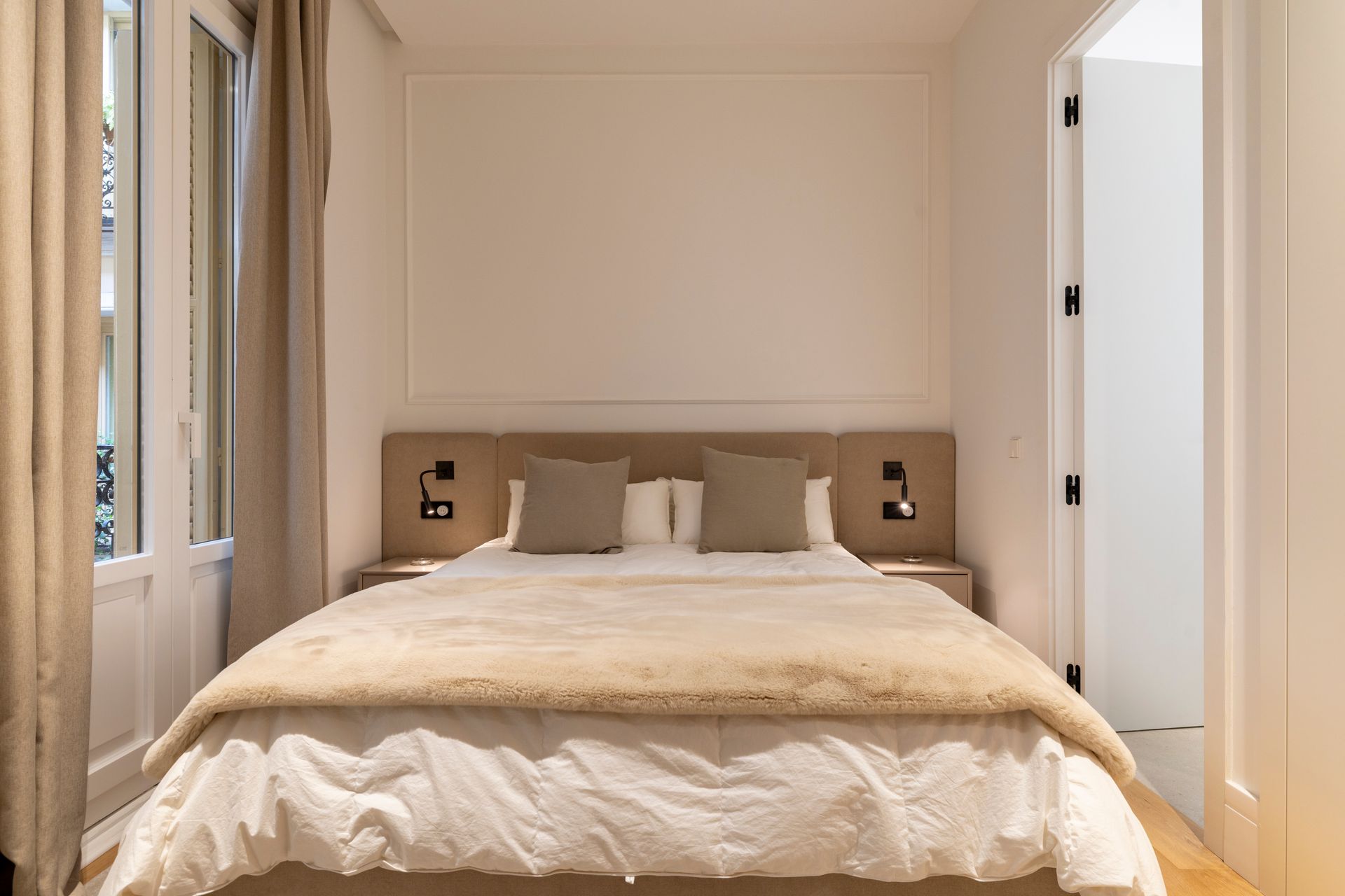 Un proyecto reciente en la Calle Barquillo, donde realizamos una reforma integral de esta vivienda exterior, pensada para resaltar su amplitud y carácter.