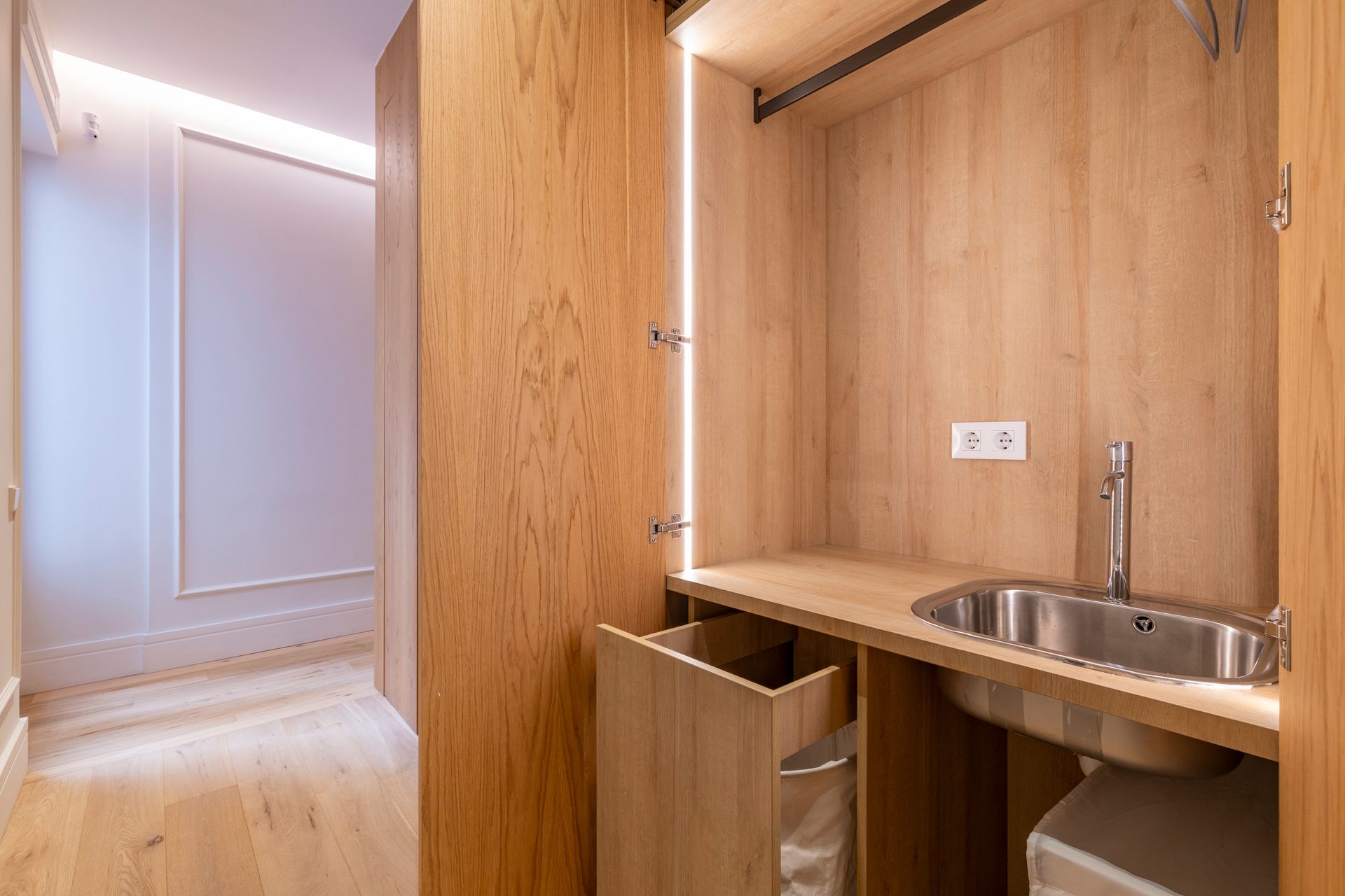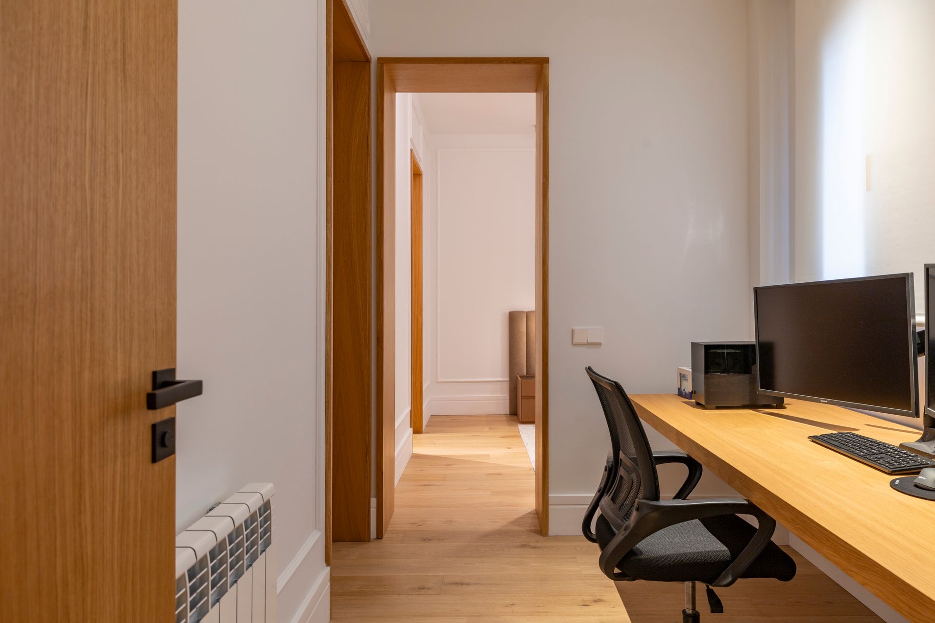 La nueva distribución da lugar a cuatro dormitorios espaciosos y estancias diseñadas para el día a día, como un acogedor estudio, una cocina de grandes dimensiones y una práctica zona de lavandería. Los armarios amplios y los pasos de madera en las puertas aportan calidez y personalidad a cada espacio.