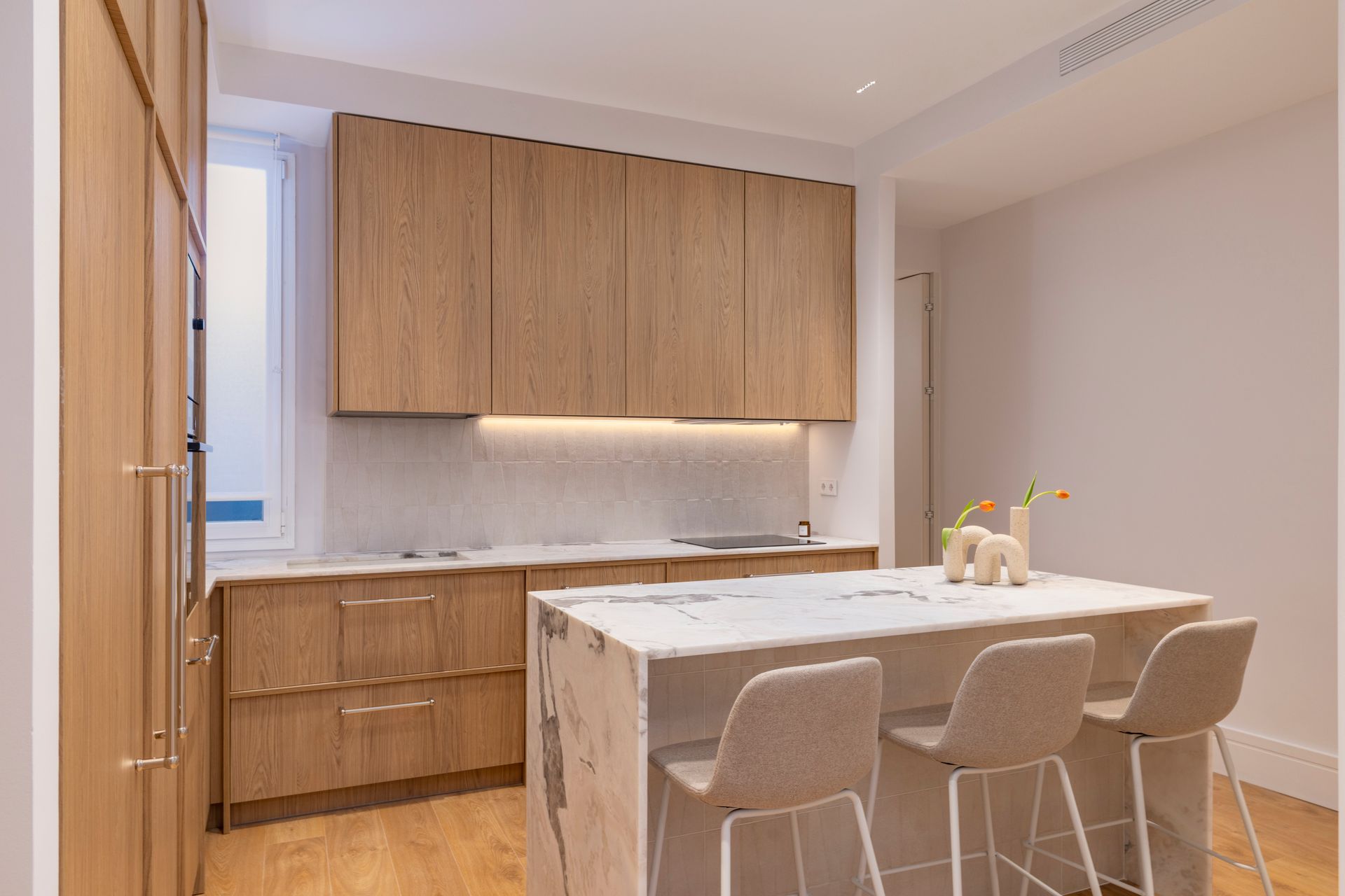 Cada detalle se diseñó para optimizar los espacios, mejorar la circulación y adaptarla a un estilo de vida contemporáneo. La actualización de materiales y acabados, junto con una cuidadosa atención a la luz natural, dio lugar a un ambiente equilibrado, sereno y con carácter propio.