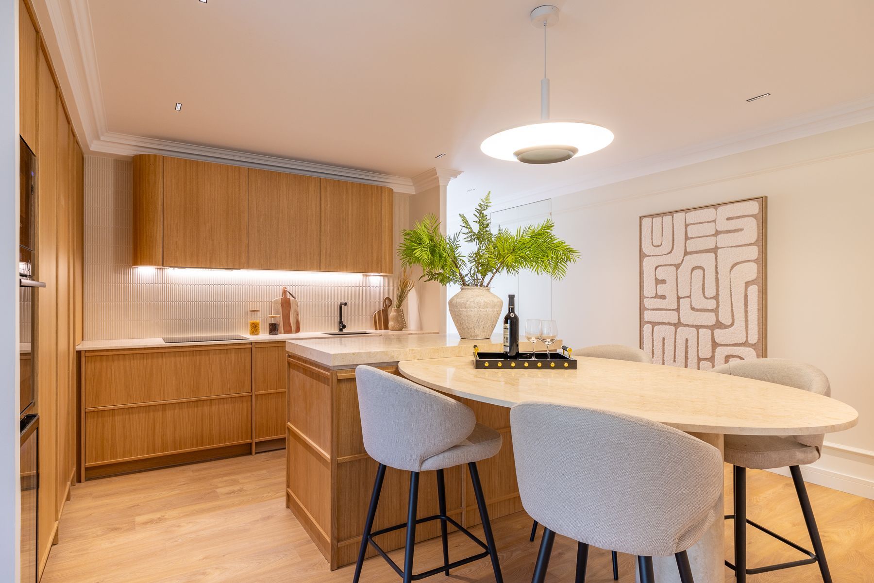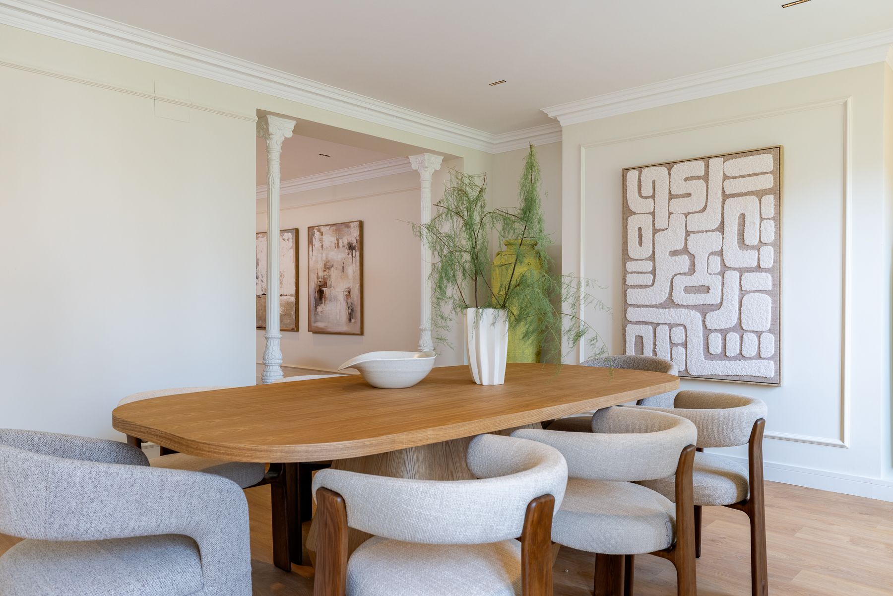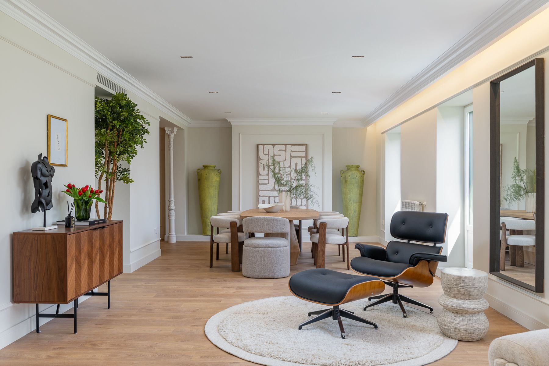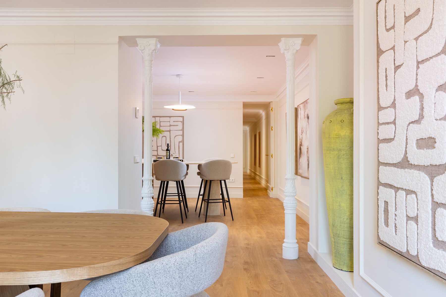 Llevamos a cabo un proyecto integral de arquitectura, interiorismo y construcción en esta vivienda en la Calle Génova, diseñada para ofrecer un hogar para disfrutar. Cada estancia fue pensada al detalle, optimizando la distribución, la luz y el confort con un enfoque estético y atemporal. La cuidada selección de materiales y acabados aporta carácter, equilibrio y elegancia a cada rincón. Esta reforma revaloriza la propiedad, combinando diseño y funcionalidad en una de las ubicaciones más emblemáticas de Madrid.