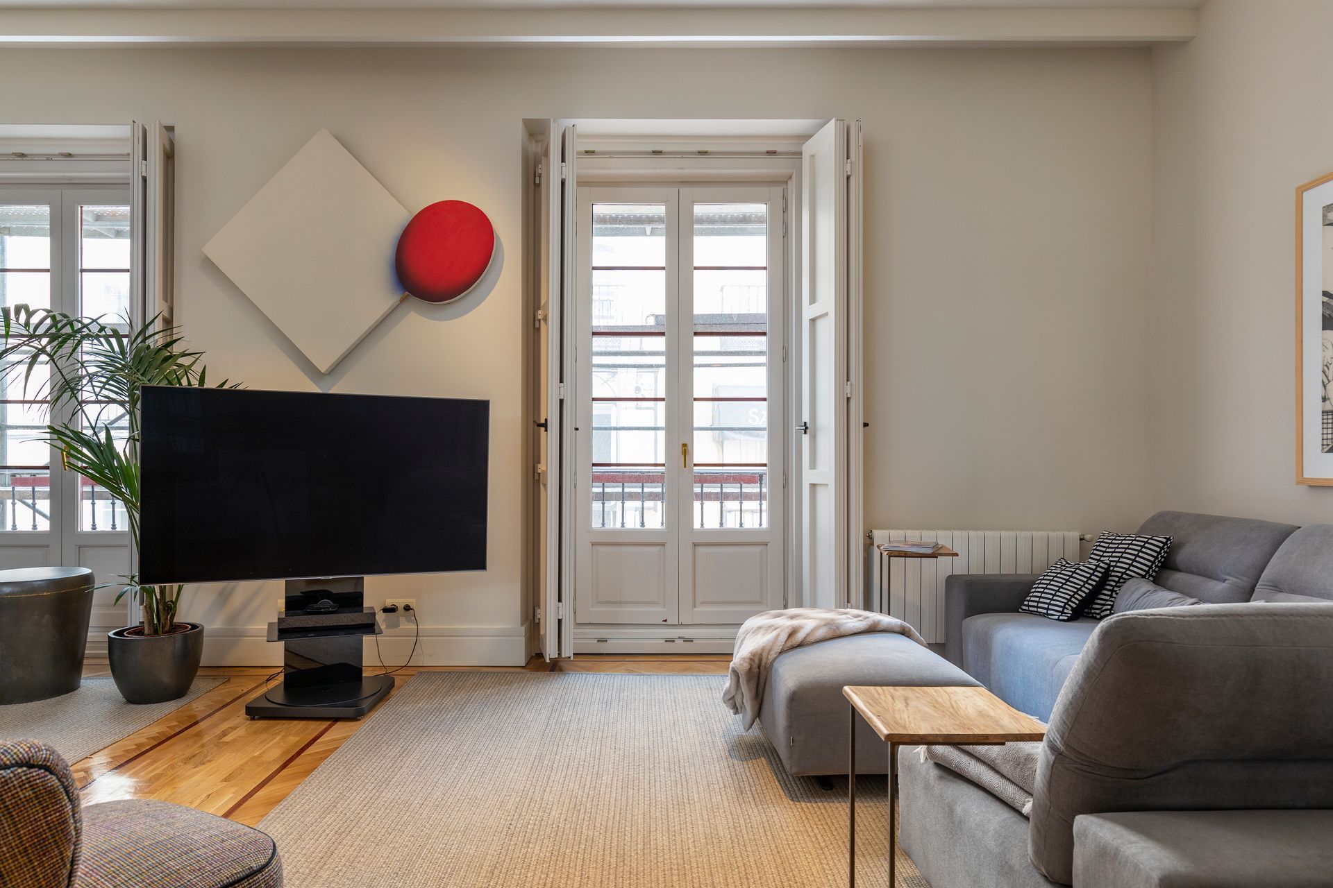 El interiorismo y decoración de esta vivienda es neutro pero a la vez combina muchas texturas en la misma gama cromática. Los detalles de color están presentes en los elementos decorativos como cojines y arte.