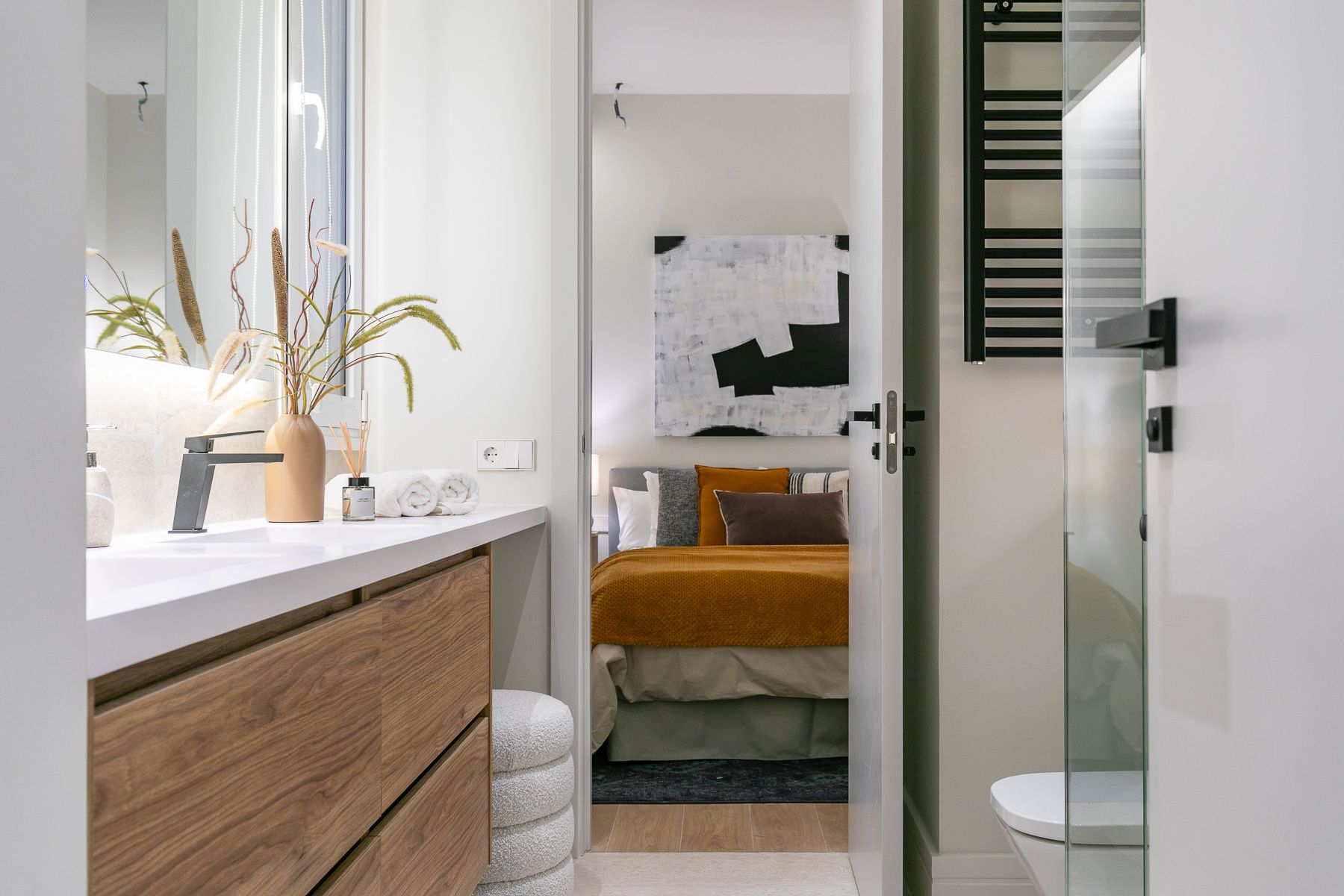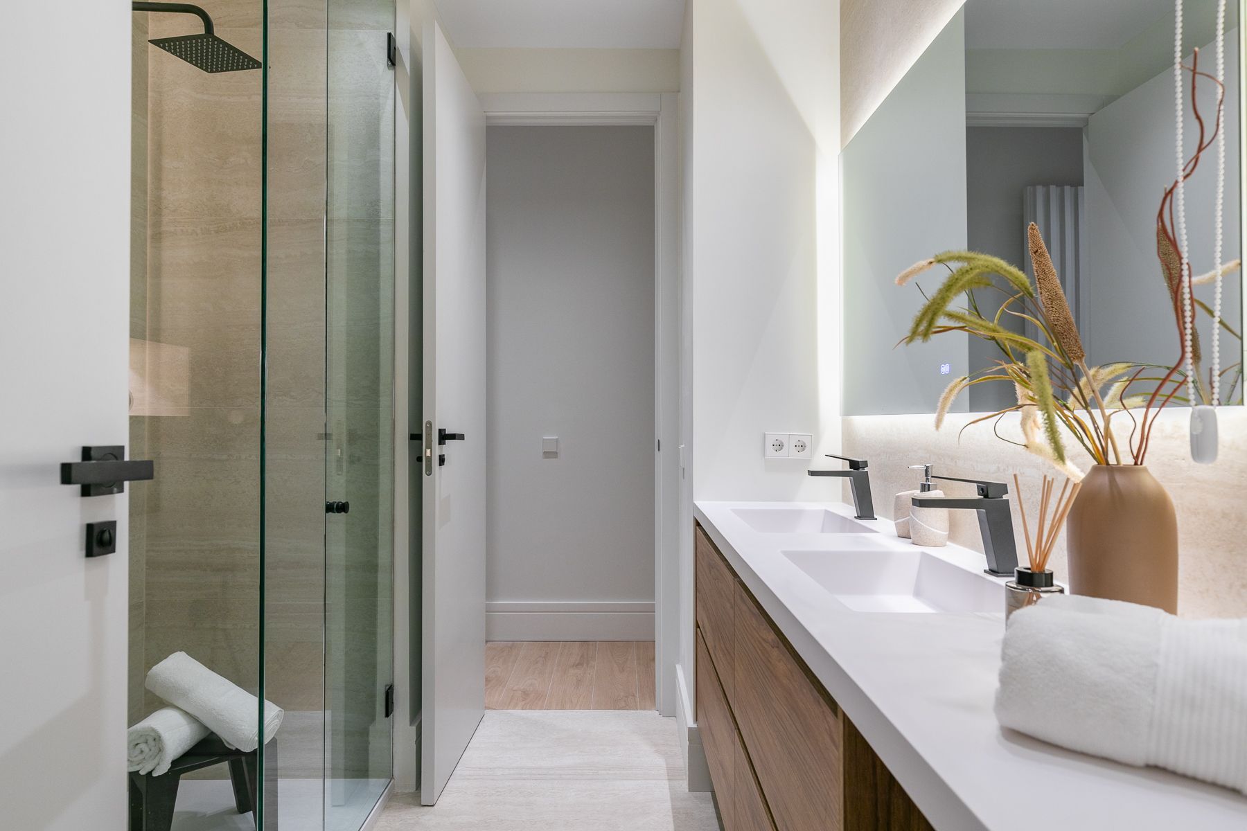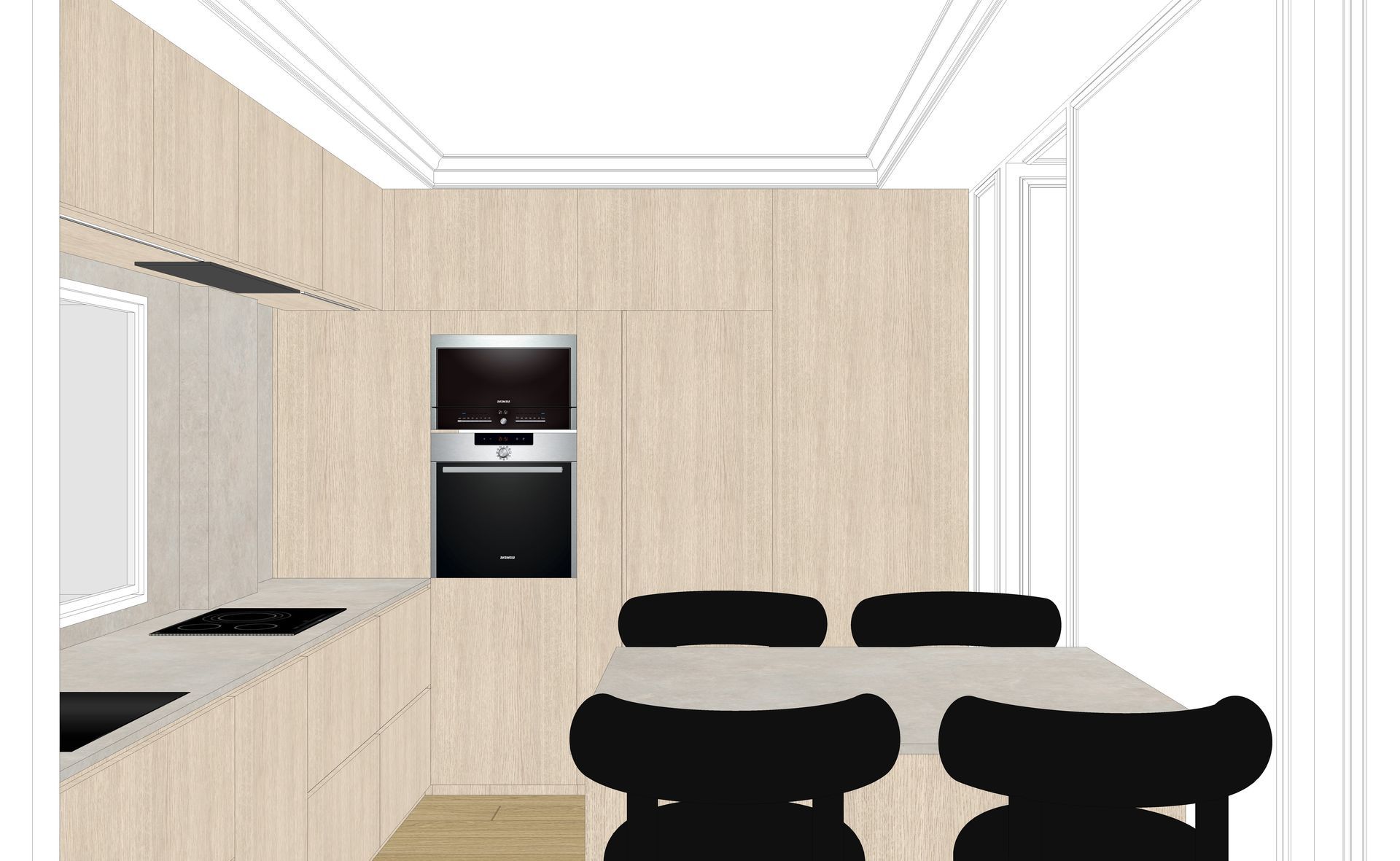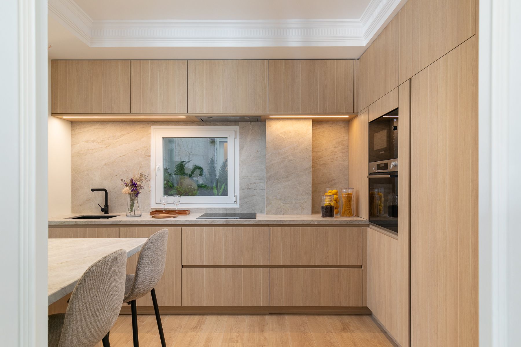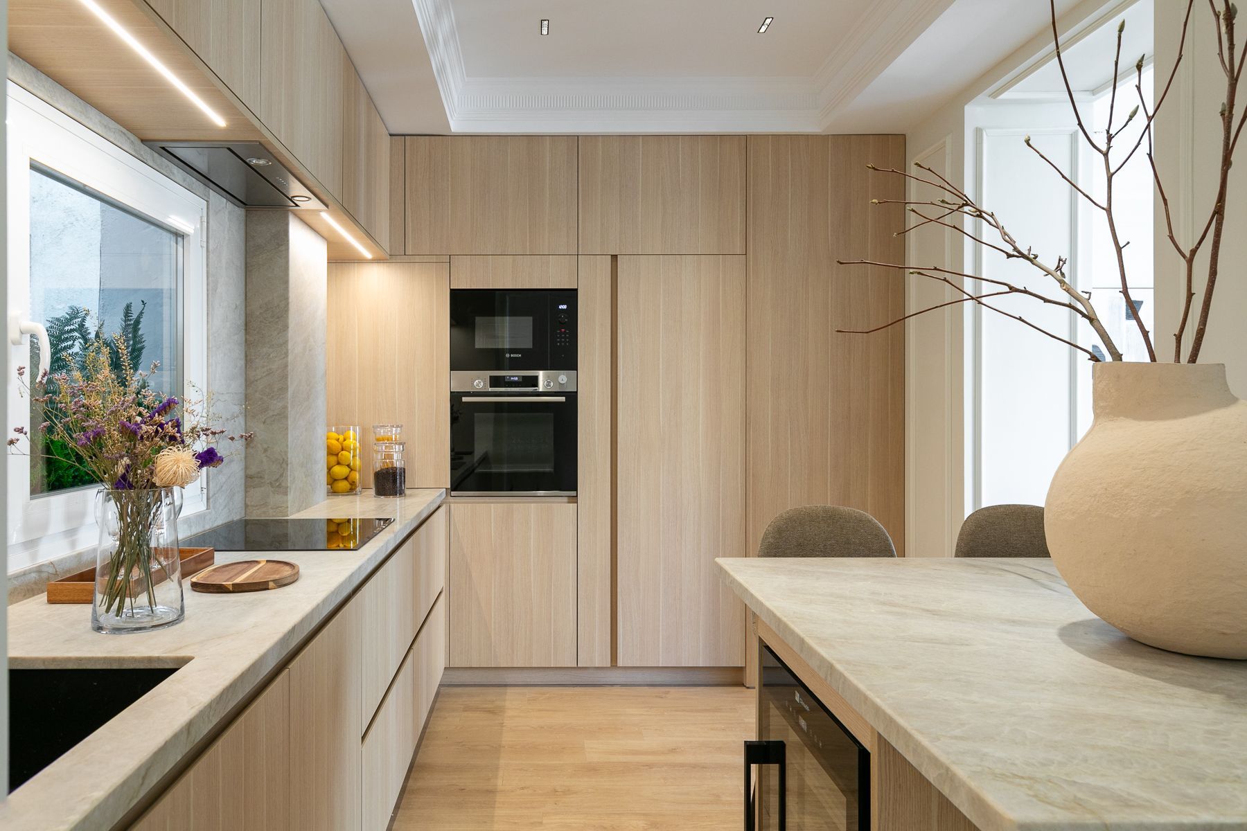 La calle Castello, ubicada junto al Parque El Retiro, es la fuente de inspiración para el desarrollo de esta impresionante vivienda. Con tres habitaciones en suite, cuenta con un acogedor salón integrado al área de la cocina comedor, cuyas vistas se abren hacia una de las calles más emblemáticas de Madrid. El follaje de los árboles casi se adentra en las estancias sociales, creando una conexión armoniosa con la naturaleza del entorno.